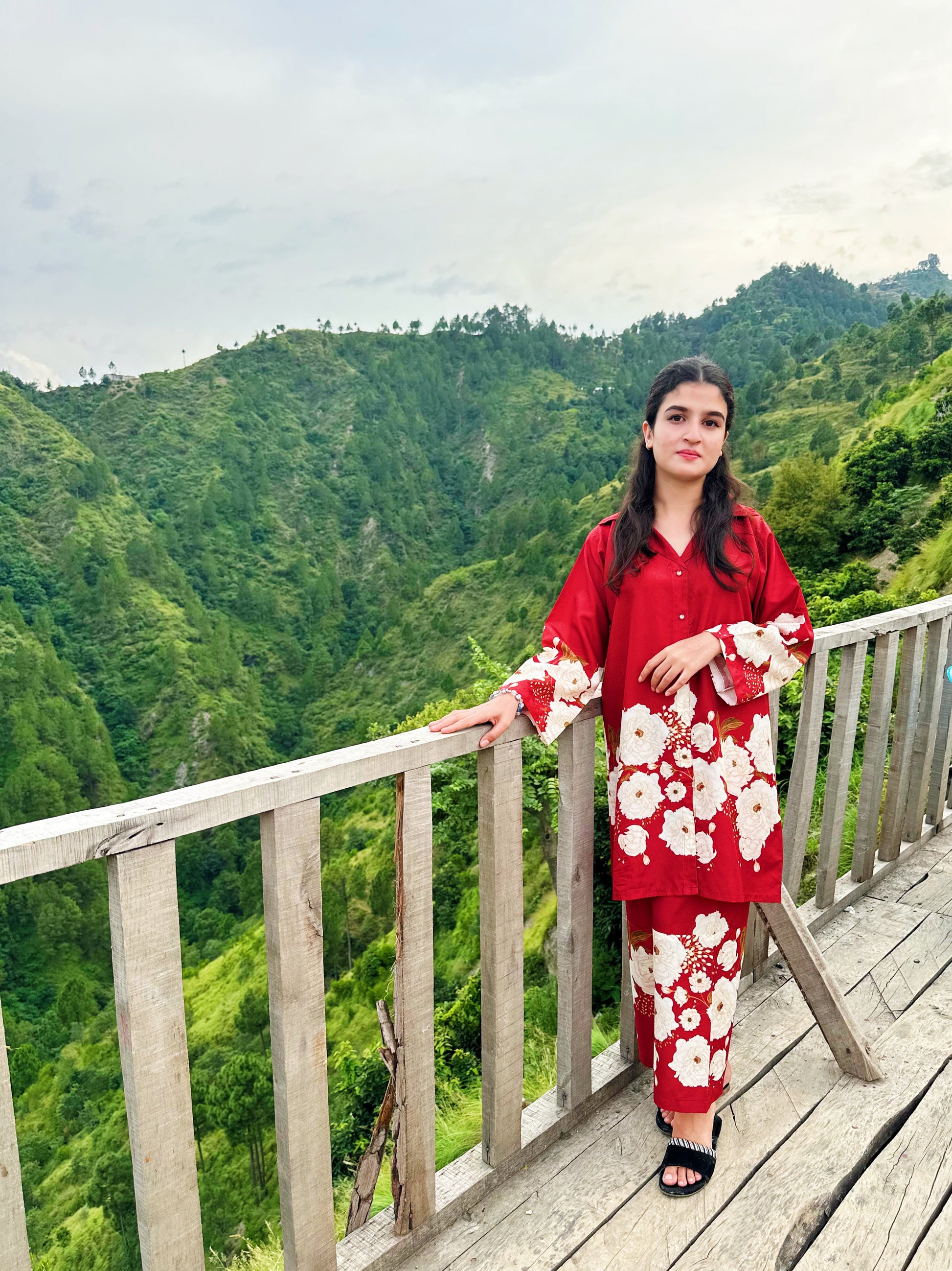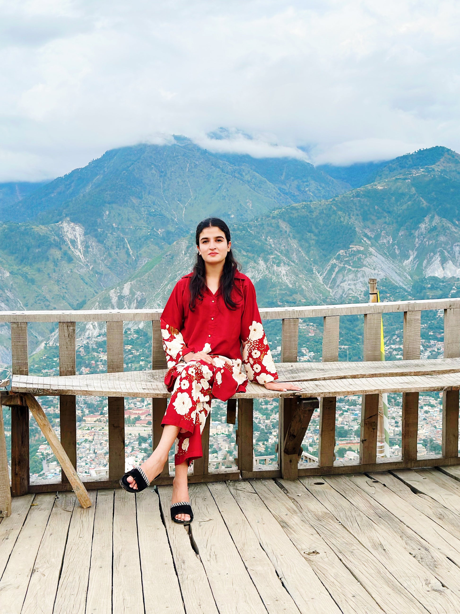 Elevate your style with TrendzFashion’s Elegant Swiss Lawn Collection, shot at the stunning Eagle Heights, the highest point of Muzaffarabad offering a mesmerizing cityscape and river view. 🌄🏙️