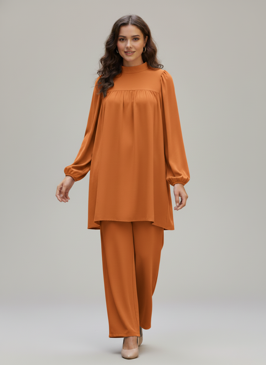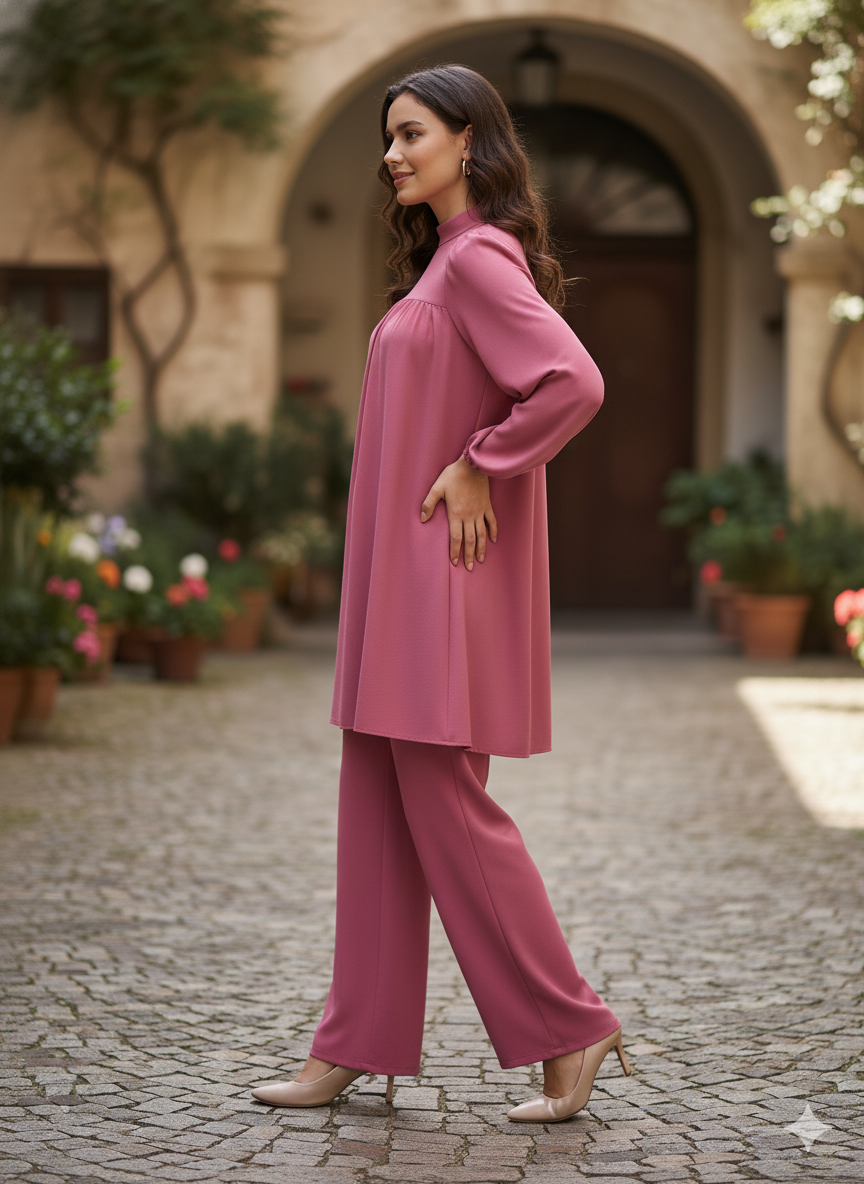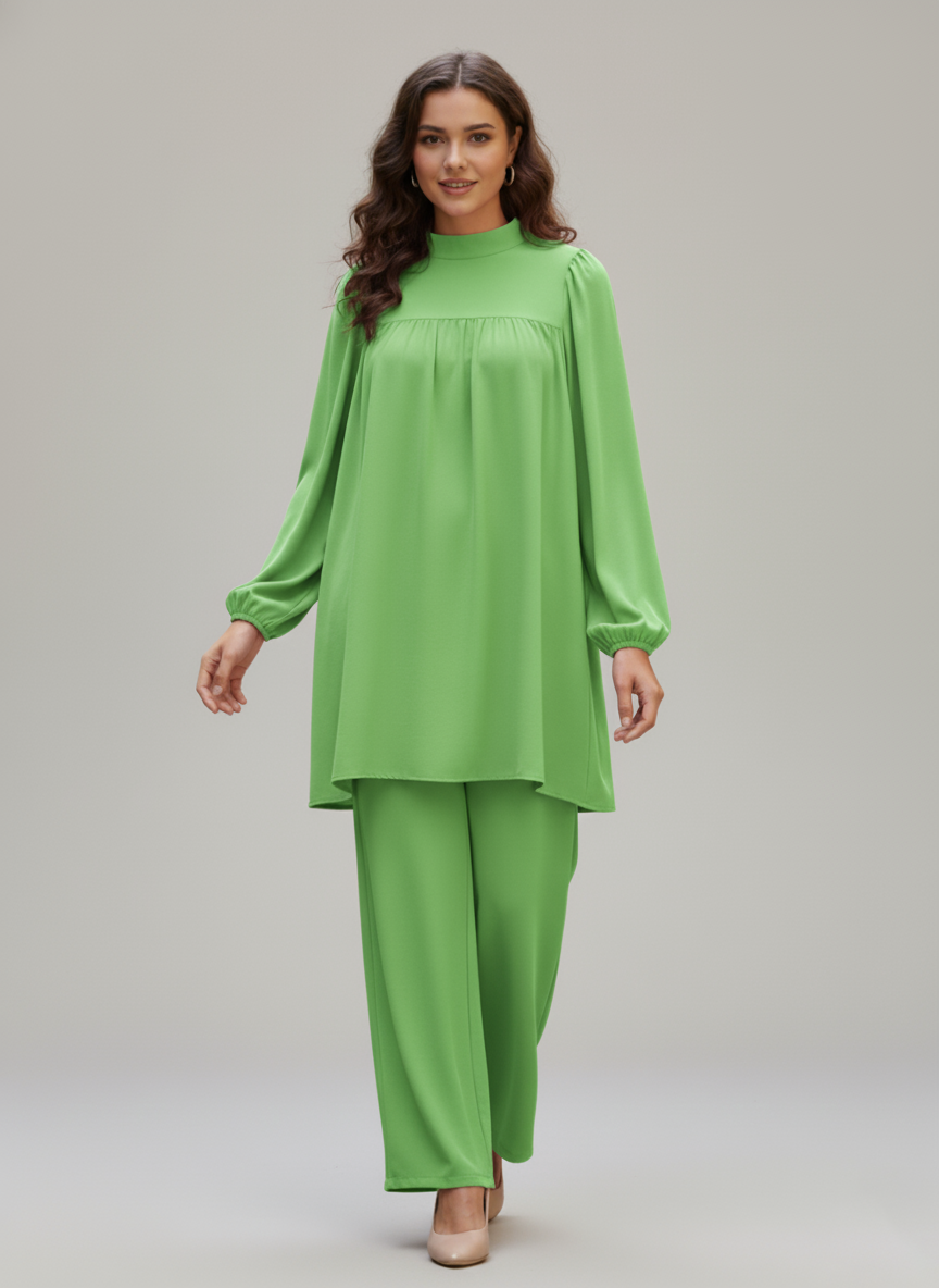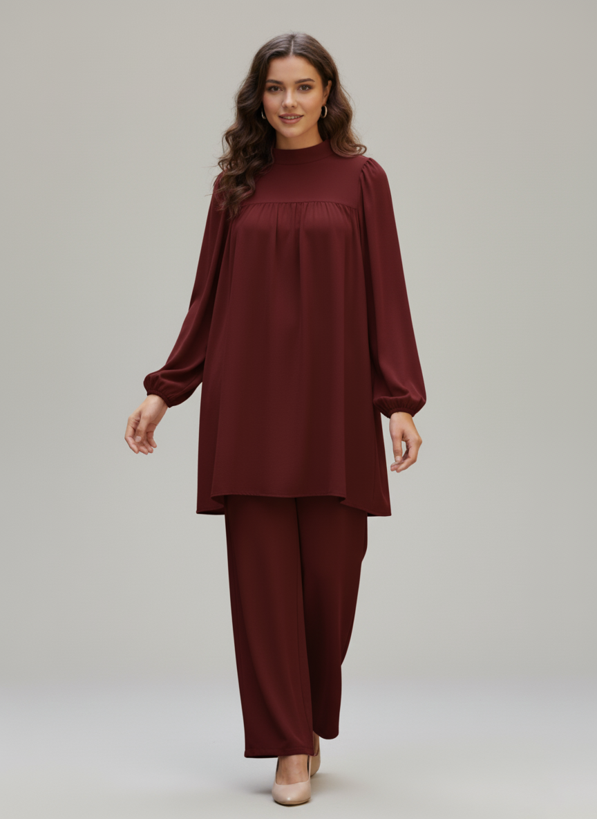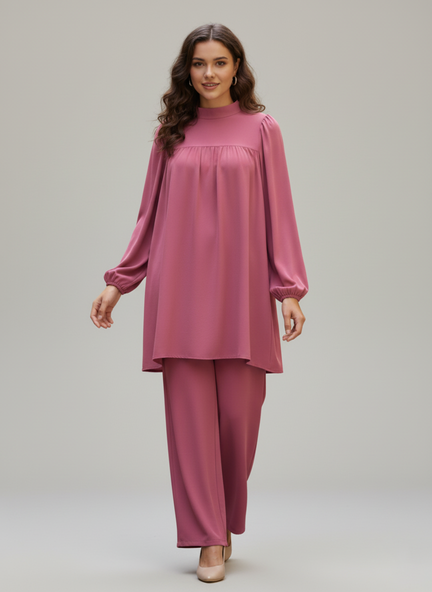 - ✅ 2-Piece Ready-to-Wear Set – Long shirt + wide trousers