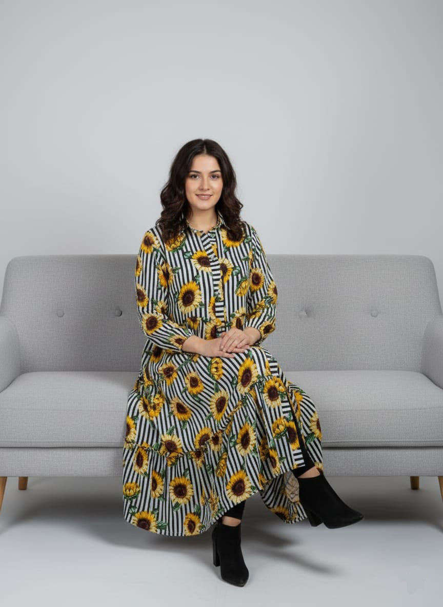 Women’s Premium Boski Sunflower Printed Long Maxi Dress
